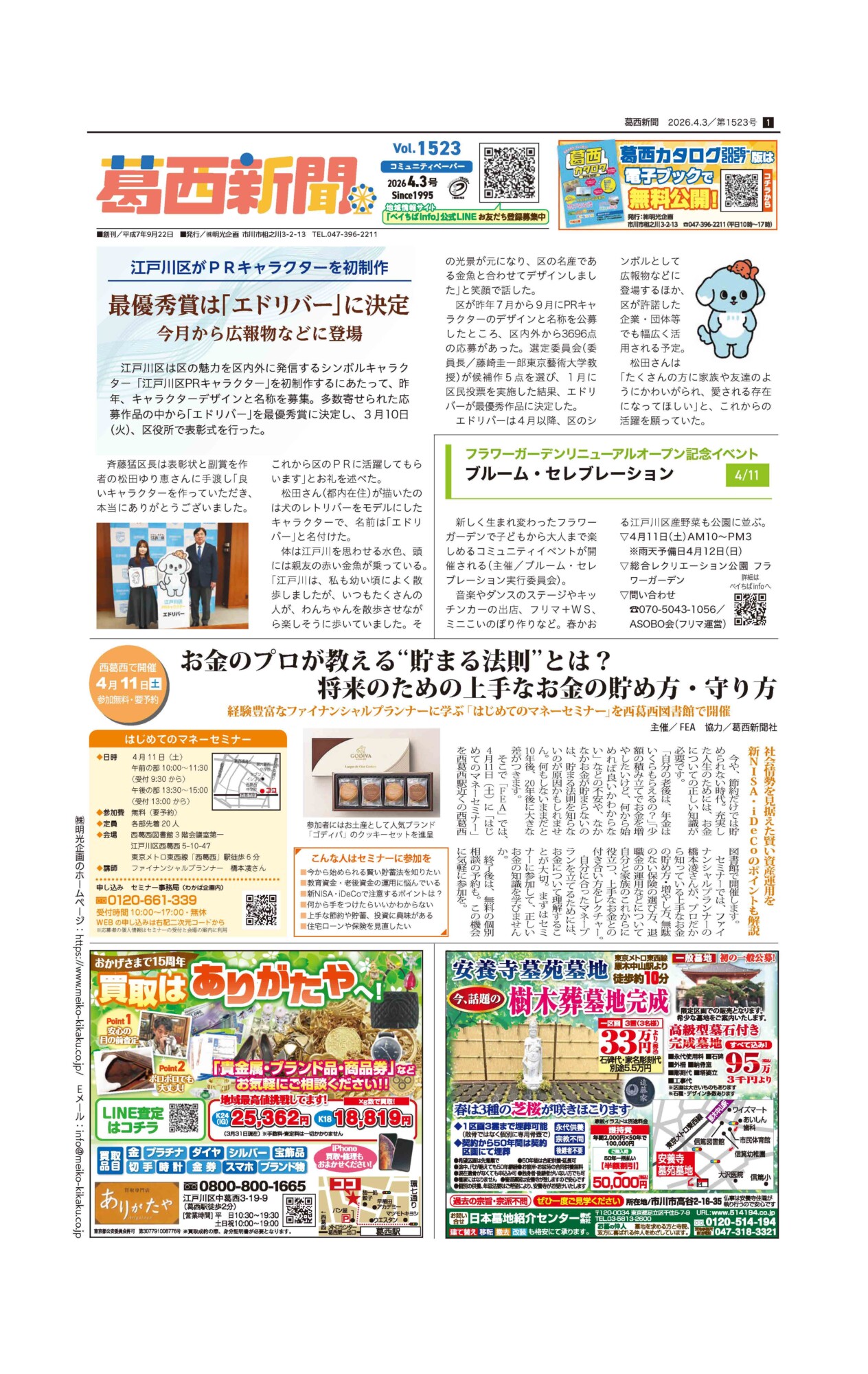 1995年創刊。江戸川区葛西エリアの主婦に最も読まれているフリーペーパー!