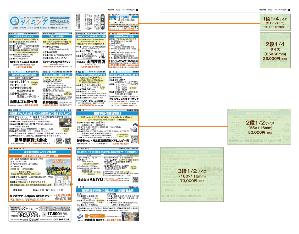 行徳新聞・浦安新聞・葛西新聞・いちかわ新聞 求人広告掲載料金