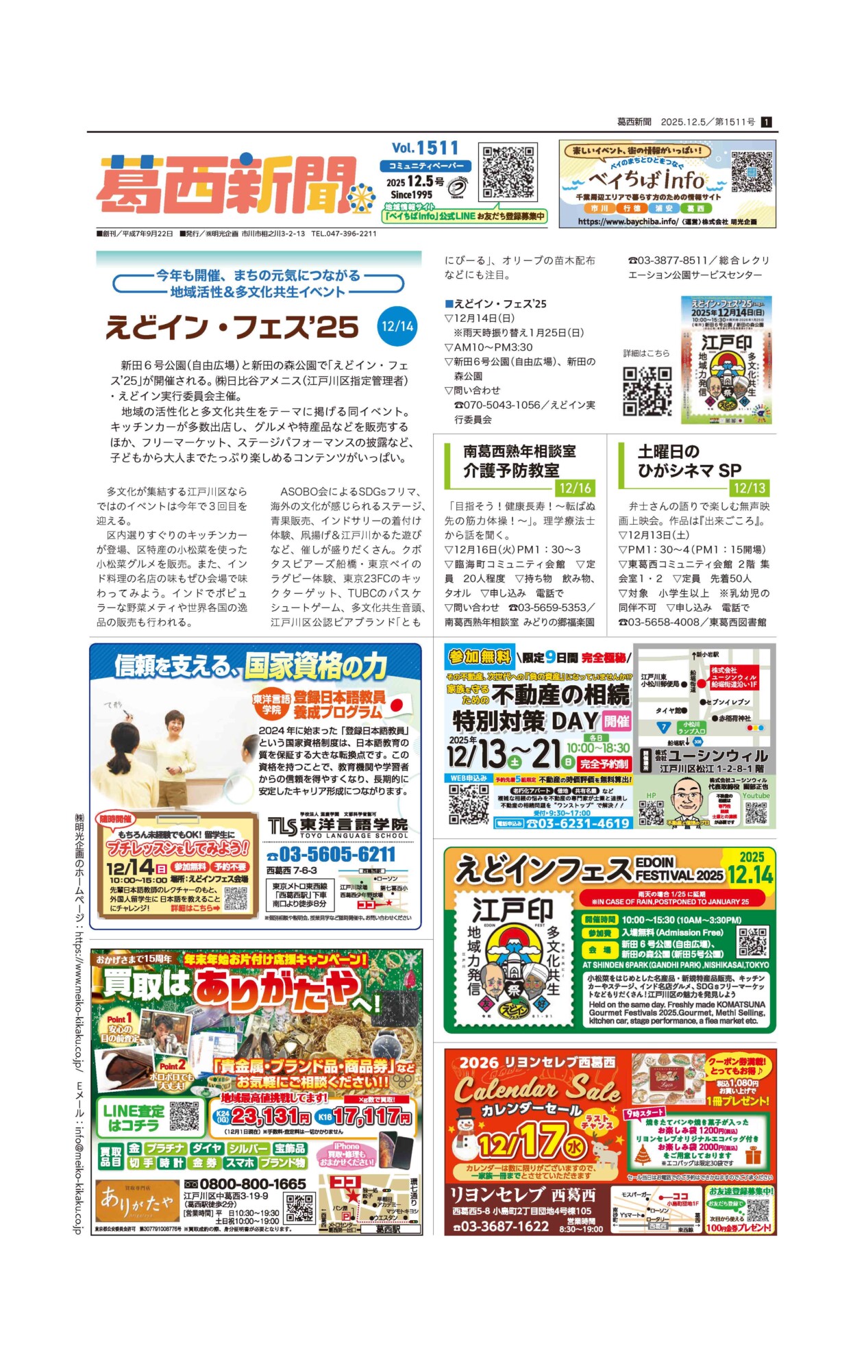 1995年創刊。江戸川区葛西エリアの主婦に最も読まれているフリーペーパー!